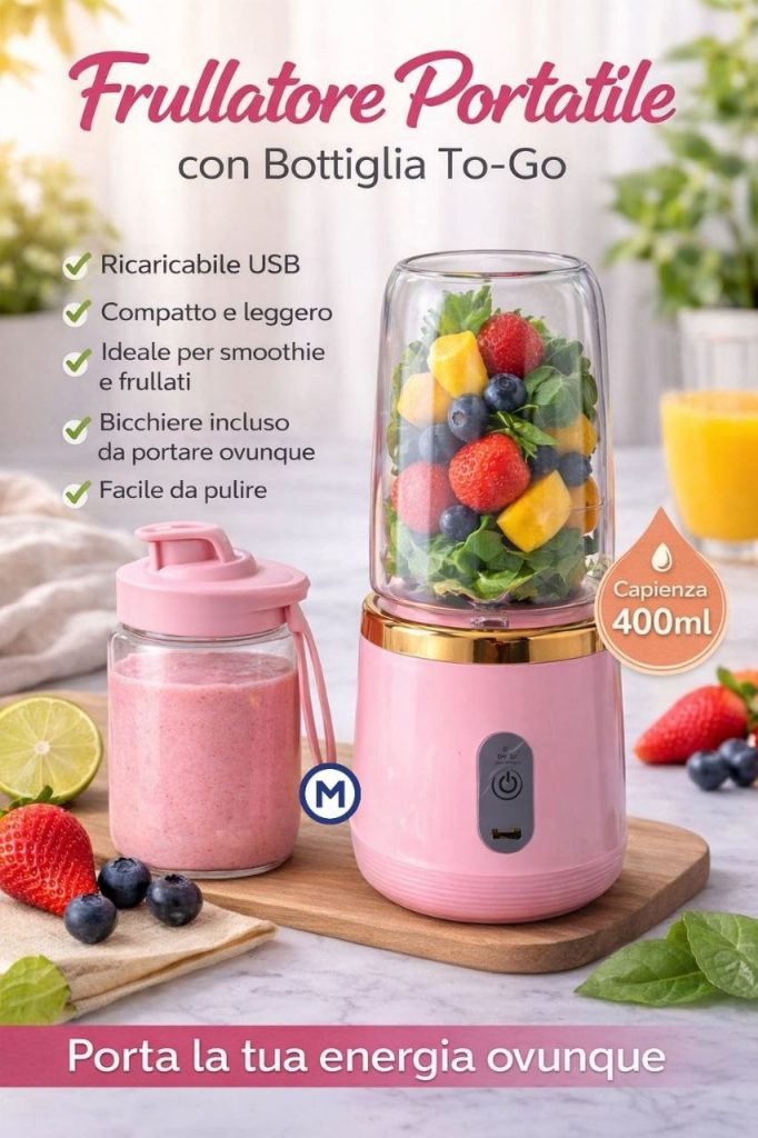 NUOVO SCARICO* FRULLATORE PORTATILE CON BOTTIGLIA TO-GO DOPPIA CAPIENZA DA 400ML